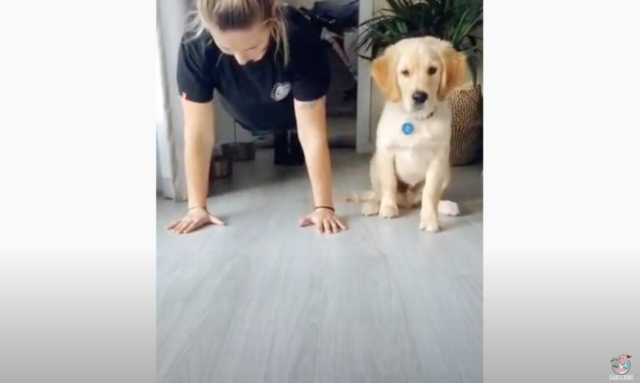 見よう見まねで飼い主さんと一緒に筋トレをする犬 動画 面白いもの集めました