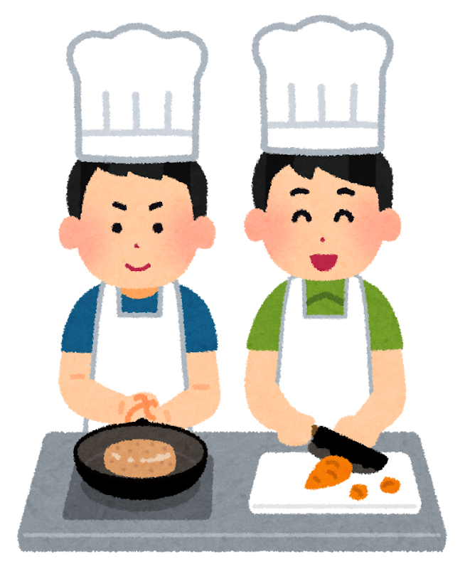 男性たちが料理をしているイラスト かわいいフリー素材集 いらすとや